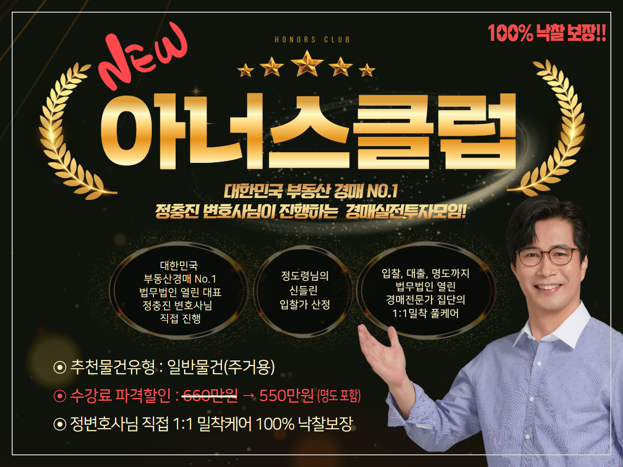 [접수중][아너스클럽][아너스S클럽] 대한민국 부동산경매 No.1정충진변호사님의 실전투자모임 new아너스클럽! 아너스S클럽!! 물건추천부터 입찰가산정, 명도까지 정변호사님 직접1-1밀착케어!